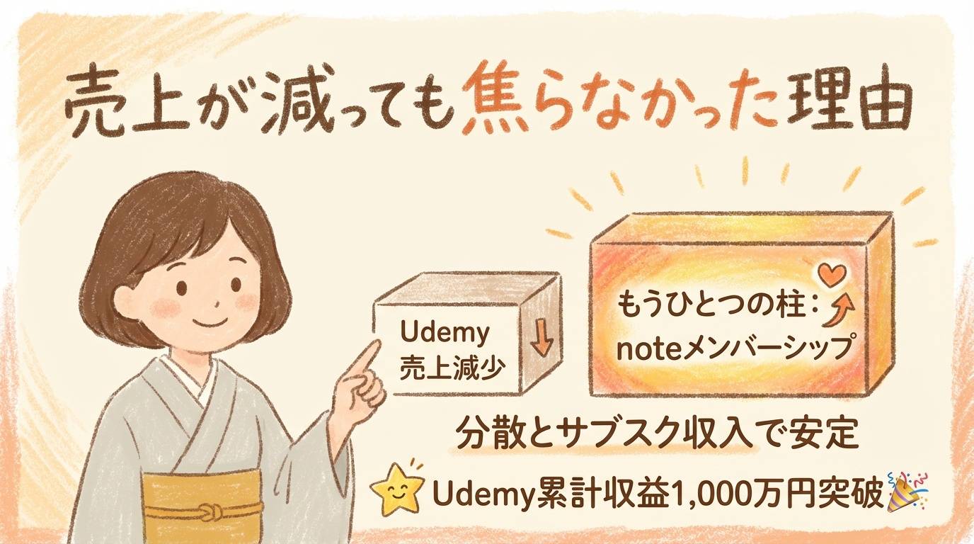 ウミノ@AI×マーケティングの専門家 売上が減っても焦らなかった理由 Readerさん、こんにちは!ウミノです。 12月に入りましたね。 年末が近づいてくると、「今年どうだったかな?」って自然と振り返りたくなりませんか? 11月の振り返りをしてみたら…いろんなことが見えてきました。 11月、こんなことやってました まず行動ベースで振り返ってみると、こんな感じでした。 Udemyコース新規2本リリース(Google Opalコース、リードマグネットカタログ15選コース) YouTube動画1本公開(Obsidian × AIエージェント検証) note記事12本執筆 メルマガ・音声配信の継続 Obsidianの学習と実践(ナレッジ管理のワークフローづくり) こうして並べてみると、「新しいものを作る」ことと「基盤を整える」ことの両方に時間を使っていたなって気づきました。 次に、数字の方も見てみましょう。 Udemy売上:$2,929(約46万円) ブラックフライデーセールというUdemy公式最大のセールがあってこの結果。 実はこれ、昨年同月と比べると約3分の1まで減少してるんです…...